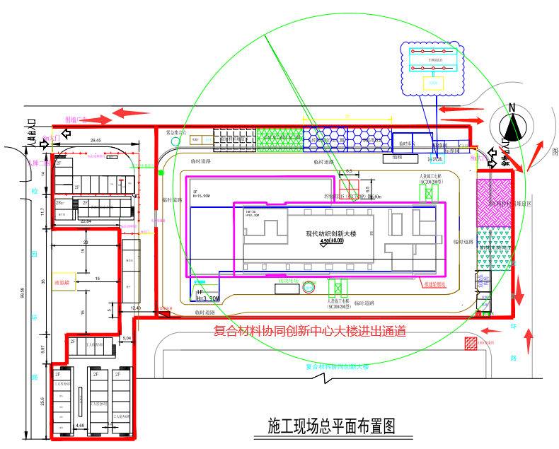 复合材料协同创新中心大楼的车辆请从项目南面相邻道路进出,若有大型设备车辆需要进出,请提前与基建后勤处联系予以协调。若遇大型构件或设备吊装需要全封闭有关道路时,将现场告示。