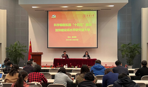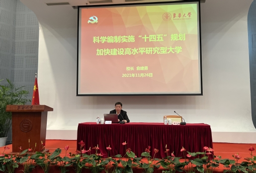 为坚持党建引领,进一步以学校事业发展远景蓝图推动全校教职工为建成“国内一流、国际有影响,有特色的高水平研究型大学”目标而奋斗,11月26日,校长俞建勇在松江校区为学校基层党员骨干作“科学编制实施‘十四五’规划 加快建设高水平研究型大学”专题辅导报告,报告由党委副书记崔运花主持。