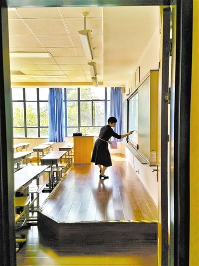 3月16日,上海市黄浦区向明中学高三数学教师蒋君波来到学校,利用电子白板为学生上网课。蔡维帅 摄