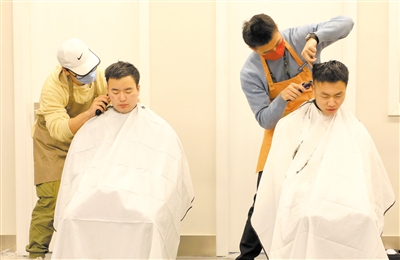 封闭管理期间,上海大学学子化身理发师,免费为师生理发。盛晓娜 摄