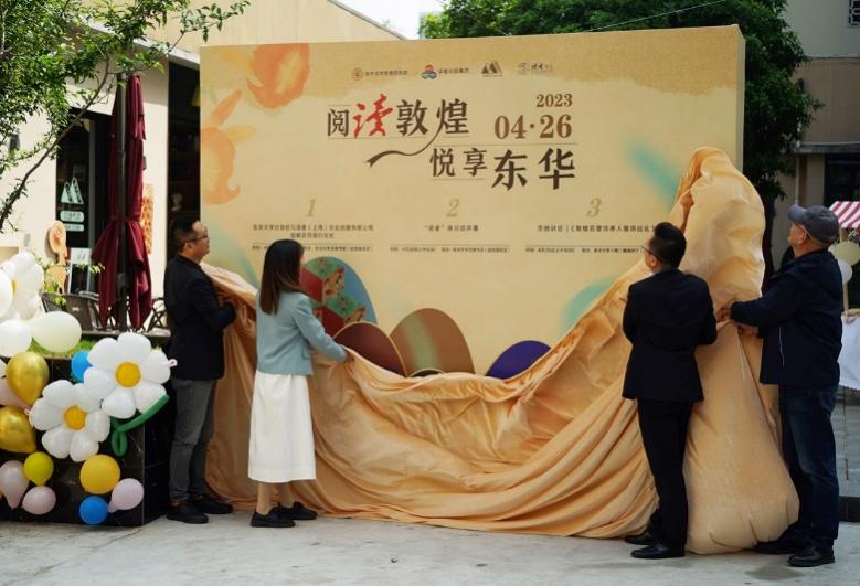 4月26日,读者书店第五届敦煌文化节进校园活动首站在我校启动。活动上,我校出版社与读者书店战略合作签约,双方首个合作项目“读者”快闪店启幕。党委常委、宣传部部长任晓杰,出版社社长陈珂,期刊中心主任王克斌,读者(上海)文化创意有限公司副总经理蔡志文、廖露丹等与会。活动由出版社总编辑周德红主持。